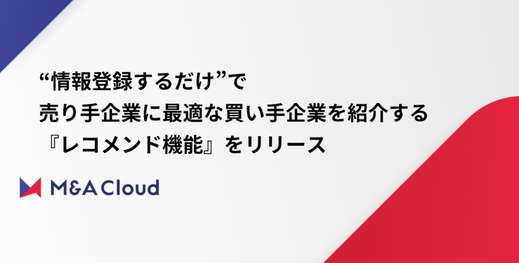 今回売り手企業向けにリリースした『レコメンド機能』は、売り手企業が登録した情報と買い手企業の買収ニーズをAIが解析し、マッチする可能性の高い買い手企業をプラットフォームのマイページ画面およびメールにてお知らせする機能です。これにより、売り手企業は“情報登録するだけ”でマッチングする可能性の高い買い手企業の情報を優先的に受け取ることができ、より効率的で精度の高いマッチングを生み出すことができます。